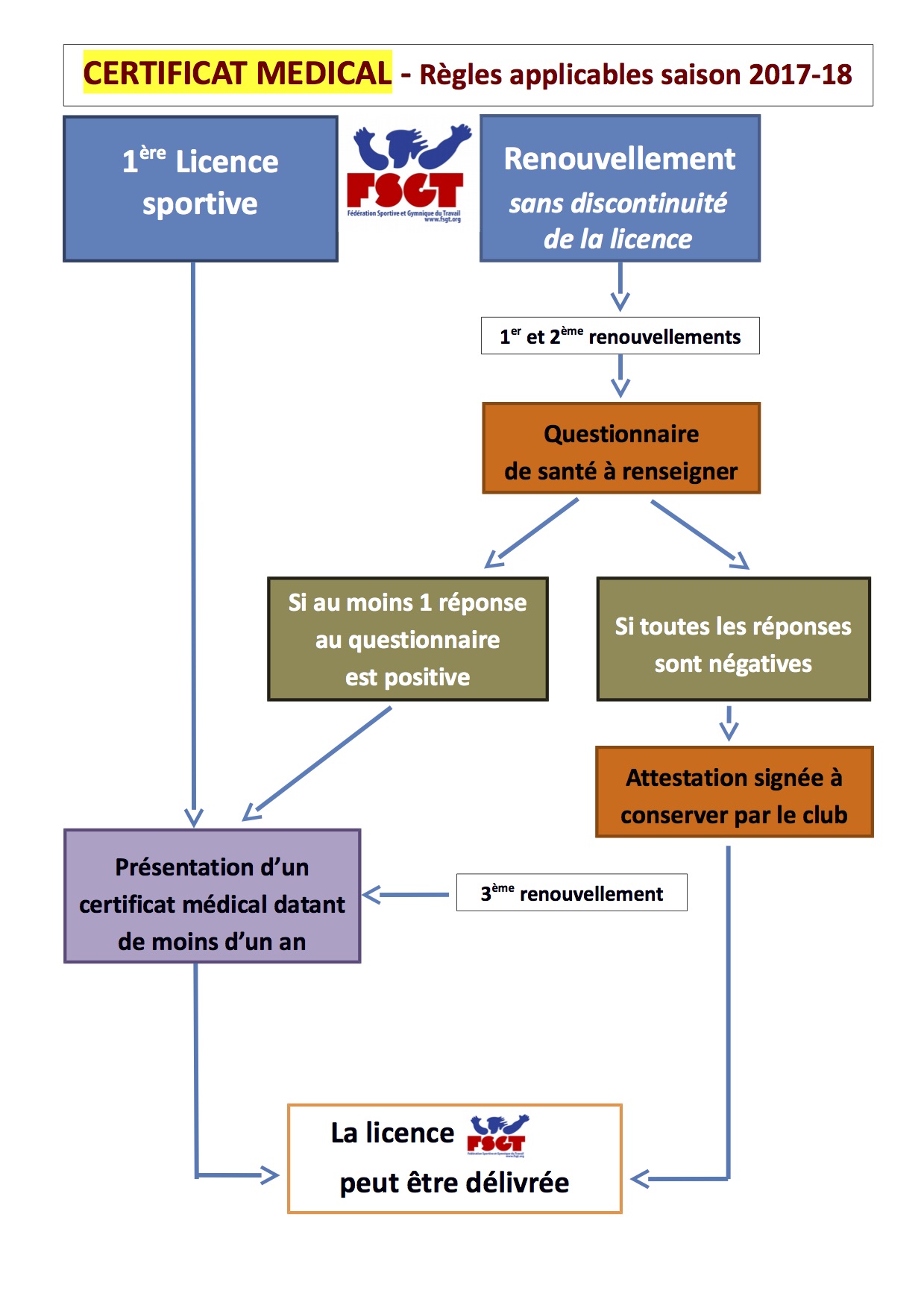 Questionnaire de santé et certificat médical de non contre indication à la pratique sportive – règles applicables